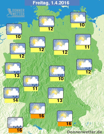 Heute fällt anfangs in einem breiten Streifen vom Saarland bis nach Sachsen noch gebietsweise Regen, im weiteren Tagesverlauf locker der Himmel hier jedoch auf und es bleibt trocken. Im Süden und Südosten bleibt es dagegen meist stark bewölkt und hier und da fällt etwas Regen. In den übrigen Landesteilen ist es verbreitet heiter oder sonnig und dazu trocken. Die Temperatur steigt auf 10 Grad in Rostock und bis 16 Grad am Bodensee.