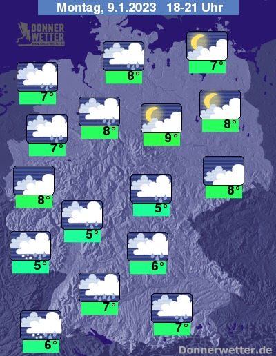 Heute Abend ist es weiterhin meist bedeckt und Auflockerungen bleiben eher selten. Es fällt gebietsweise Regen, wobei es im Osten und Nordosten größtenteils trocken bleibt. Im Süden und Südwesten fällt auch teilweise Schneeregen. Die Temperatur liegt bei 5 Grad in Saarbrücken und 9 Grad in Magdeburg.