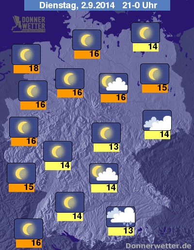 Für heute Abend können sich die meisten Landsleute auf einem sternenklaren Abendhimmel freuen. Sowohl im Osten als auch im Südosten halten sich dagegen meist noch viele, teils dichte Wolken, und hier und da fällt auch noch etwas Regen, ansonsten bleibt es aber trocken. Die Abendtemperatur liegt bei 18 Grad direkt an der Nordsee und frischeren 13 Grad am teils noch nassen Alpenrand.