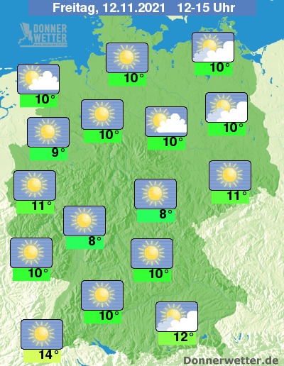 Heute Nachmittag scheint über dem Land verbreitet die Sonne, nur hier und da können sich auch mehr oder teils dichte Wolken halten, dabei bleibt es trocken. Die Temperatur liegt bei 8 Grad im Eichsfeld und 12 Grad in München.