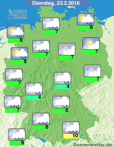 Höchstwerte um 4 bis 10 Grad C am Dienstag.