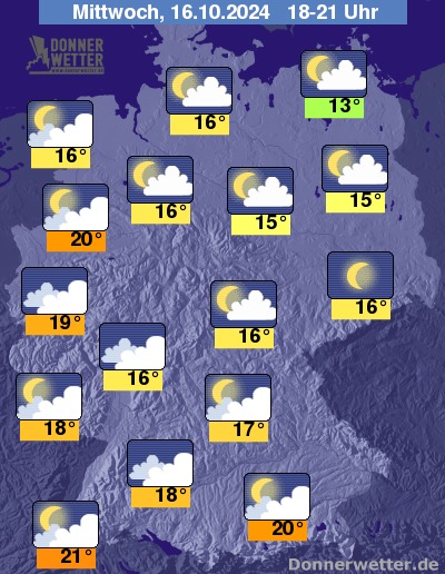 Heute Abend ziehen besonders im Süden und Westen oft viele und teils dichte Wolken auf, die jedoch keinen Regen bringen. Im übrigen Land ist es zumeist nur locker oder wechselnd bewölkt, auch dabei bleibt es trocken. Die Temperatur liegt bei 13 Grad an der Müritz und sehr milden 21 Grad in Freiburg.