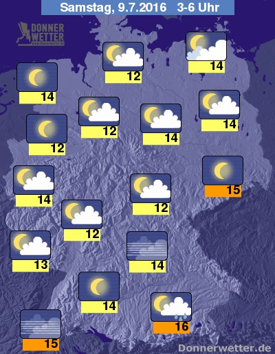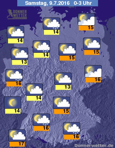 In der Nacht auf Samstag sind nur noch selten Schauer zu erwarten, einzelne Tropfen fallen dann meist nur noch entlang von Donau und Weser. Im übrigen Land zeigt sich der Himmel zumeist locker bewölkt und mit Tiefstwerten um 17 bis 13 Grad C.