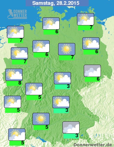 Heute halten sich im Osten und Süden oft noch dichte Wolken, die anfangs noch letzte Regentropfen oder Schneeflocken bringen können. Im übrigen Land ist es hingegen schon häufig heiter und hier und da auch sonnig. Im Tagesverlauf zieht von Westen her jedoch meist aufgelockerte, teils auch starke Bewölkung durch, dabei bleibt es trocken. Nach Osten hin ist es am Nachmittag verbreitet heiter bis sonnig und dazu trocken. Die Höchstwerte erreichen 3 Grad in Rosenheim und bis 8 Grad in Köln.