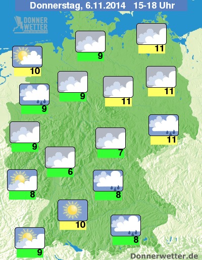Heute Nachmittag halten sich im Südosten, Osten und Norden meist dichte Wolken, dabei fällt vor allem im Südosten, regional aber auch im Osten und im Norden Regen, sonst ist es dagegen meist aufgelockert bewölkt und es bleibt weitgehend trocken, im Südwesten, Westen und Nordwesten ist es gebietsweise auch heiter. Die Temperatur steigt auf teils nur 6 Grad am Odenwald und auf etwa 11 Grad in Berlin-Brandenburg.