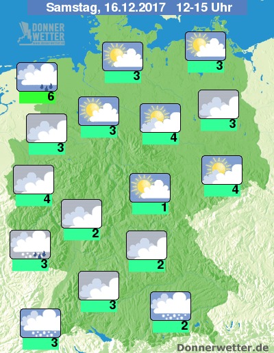 Heute Nachmittag ist es über dem Nordseeumfeld, dem Südwesten und dem Alpenvorland bedeckt, dazu fällt hier zeitweise Regen, Schneeregen oder Schnee, im Nordseeumfeld bilden sich einzelne Schauer. Auch über der übrigen Südwesthälfte Deutschlands ist es weitgehend stark bewölkt, dazu jedoch meist trocken. Sonst ist es teils trüb, teils aufgelockert bewölkt und trocken. Die Werte liegen zwischen 1 und 6 Grad.