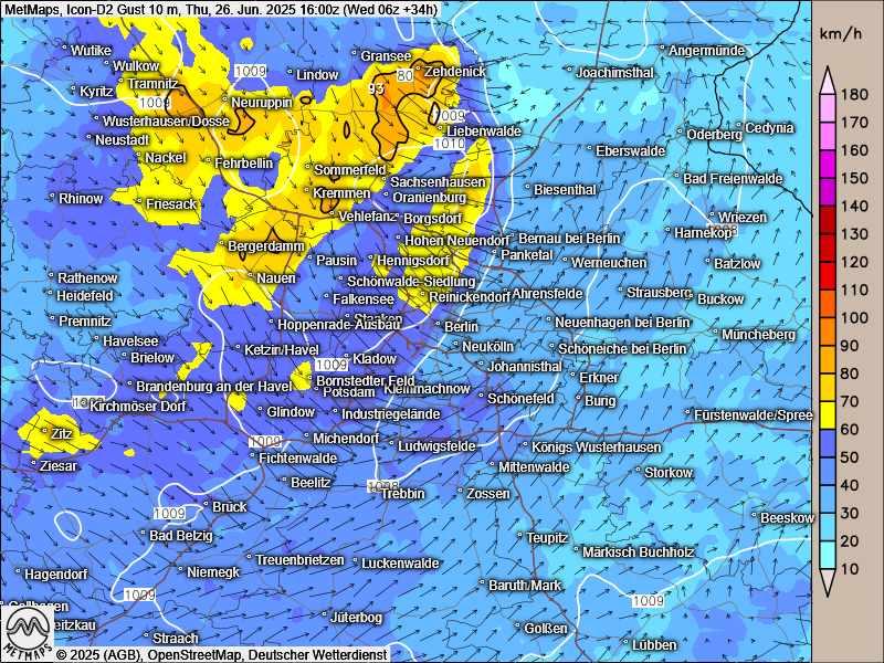 Die Gewitter ziehen in den Frühstunden des Donnerstag von Westen und Südwesten heran. Auf besonders warme bis heiße Luft treffen sie am Nachmittag dann vor allem in der Ost- und Südosthälfte - besonders in Bayern, aber auch wie zuletzt auch in Brandenburg und Berlin (siehe letzte Karte) - könnten sich dabei in Folge erneut kräftige Unwetter entwickeln.