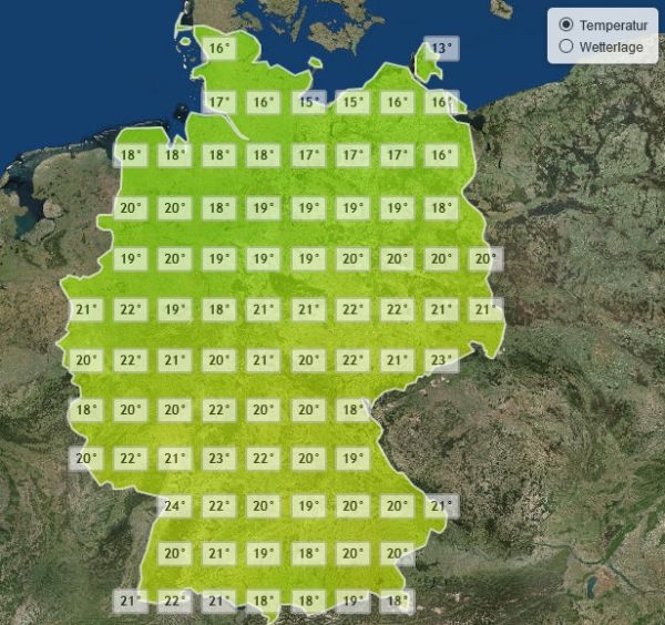 Bis zum Abend erwarten uns landesweit noch einmal einige Sonnenstunden. Nur selten zeigen sich dabei dichtere Wolken am Himmel. Zudem wird es erneut angenehm warm. Während es in Küstennähe bloß für Höchstwerte um die 16 Grad reicht, fällt südlich der Elbe fast überall die 20 Grad Marke. In Baden kratzt das Thermometer sogar an der 25 Grad Marke.