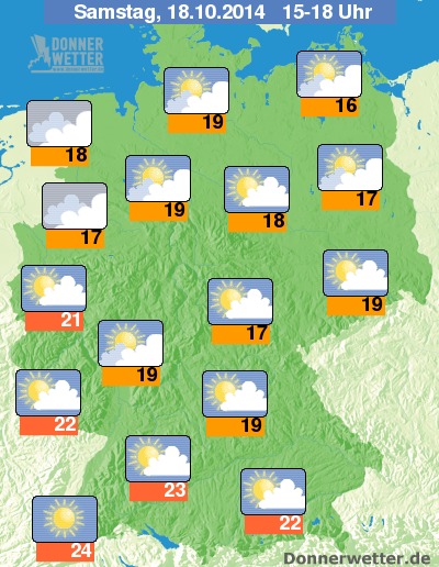 Am Sonntag ist es meist heiter, zeitweise sogar auch sonnig, jedoch ziehen im Norden gebietsweise auch mal dichtere Wolken durch, dabei bleibt es aber weitgehend trocken. Es werden oft spätsommerliche Werte zwischen 17 und 24 Grad erreicht.