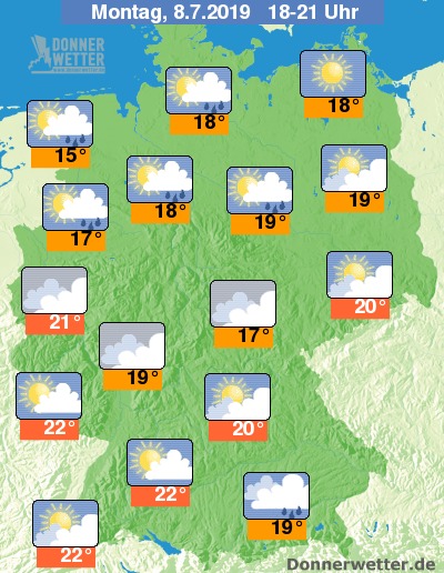 Am Abend wechseln sich Sonne und Wolken, mal ist es locker mal stärker bewölkt, über weiten Teilen des Landes ab. Am Alpenrand, der Mitte und im Westen ist es teils auch bedeckt. Mit Schauern muss am Abend vorwiegend im Norden sowie im Alpenvorland gerechnet werden.