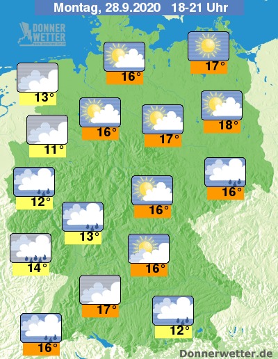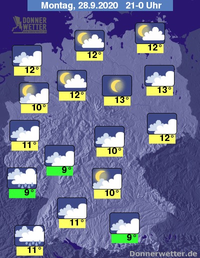 In den Abendstunden bleibt der Himmel über der Westhälfte sowie südlich der Donau weitgehend bedeckt und immer wieder muss im Verlauf mit Schauern gerechnet werden. Über dem norddeutschen Tiefland sowie im Osten überwiegt zunächst noch ein meist trockener Sonne-Wolken-Mix, bevor die Bewölkung am späteren Abend auch hier stellenweise zunimmt.