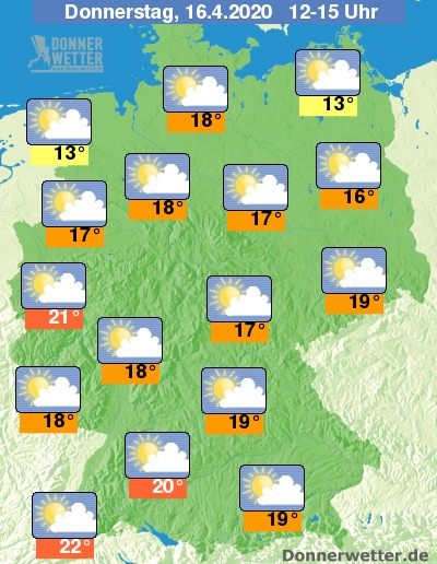 Die Temperaturen steigen jedoch allgemein noch etwas an und überschreiten im Süden und Westen häufig die 20 Grad - Marke. Stellenweise werden hier sogar bis zu 25 Grad erreicht.
