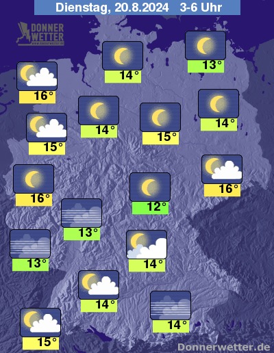 Die Temperaturen gehen in den frühen Morgenstunden zurück auf Werte um 16 bis 12 Grad.
