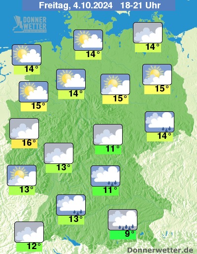 Heute Abend bleibt es über der Südosthälfte Deutschlands wolkenverhangen und vor allem über Bayern und Sachsen fällt zudem zeitweise, zum Teil schauerartiger Regen. Weiter nach Nordwesten hin ist der Himmel  mehr und mehr aufgelockert oder sogar nur leicht bewölkt, hier bleibt es trocken. Die Temperatur liegt bei nasskalten 9 Grad im Berchtesgadener Land und bis 16 Grad in der Kölner Bucht.