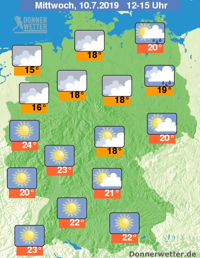 Am frühen Nachmittag dominieren im Norden teils dichtere Wolken, im Nordosten können aus mächtigeren Haufenwolken auch örtliche Schauer fallen. Sonst gibt es eine freundliche Mischung aus Sonne und lockeren Wolken, im Süden und Südwesten strahlt die Sonne für längere Zeit von einem heiteren Himmel.