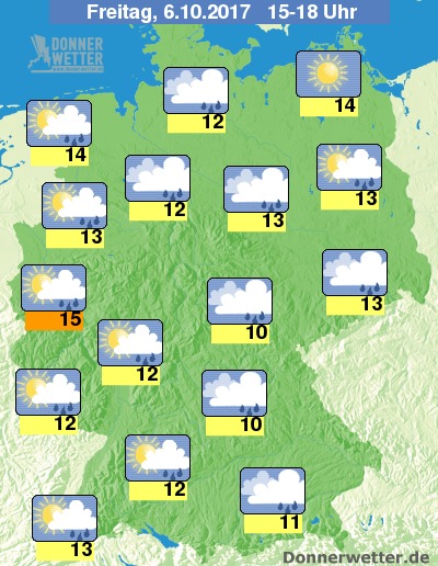 Am Nachmittag ist der Himmel über weiten Landesteilen dicht bewölkt oder bedeckt, längere freundliche Phasen sind vor allem an Nord- und Ostsee sowie in der Südwesthälfte zu erwarten. Mit Schauern muss am Nachmittag verbreitet gerechnet werden.