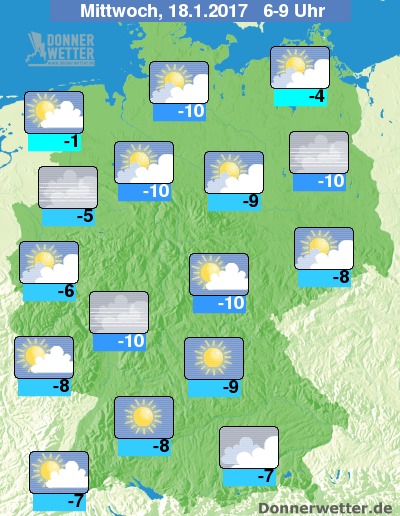 Regional Tiefstwerte deutlich unter -10 Grad C.