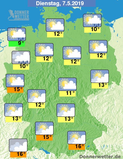 Am Dienstag scheint vor allem im Norden häufig die Sonne, sonst ist es wechselnd bis stark bewölkt, dazu bilden sich nur selten einzelne Schauer. Die Temperatur erreicht 9 Grad an der Nordsee und bis 16 Grad in München.