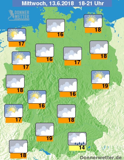 Heute Nachmittag fällt im Südosten unter dichten Wolken zeitweise Regen. Im übrigen Bundesgebiet ist es oft stark, hier und da auch mal aufgelockert bewölkt, dazu bleibt es bis auf wenige Ausnahmen im Ostseeumfeld trocken. Die Temperatur liegt bei 14 Grad in Rosenheim und bis 19 Grad in der Lausitz.