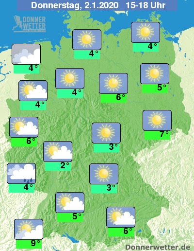 Am frühen Nachmittag strahlt abgesehen lokaler Nebel- oder Hochnebelfelder verbreitet die Sonne von einem blauen oder nur leicht bewölkten Himmel. Im Südwesten nimmt die Bewölkung allmählich zu.