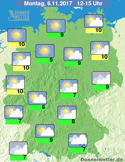 Heute Nachmittag bleibt es über dem Südosten Deutschlands bedeckt und es fällt hier weiterhin zeitweise Regen. Dichte Wolken halten sich auch über dem Südwesten und Sachsen, dabei fällt hier aber kaum Regen. Weiter nach Nordwesten hin scheint dagegen zunehmend die Sonne und im Nordwesten und Norden ist es sogar verbreitet sonnig, dabei bleibt es trocken. Die Temperatur liegt bei kühlen 6 bis 10 Grad.