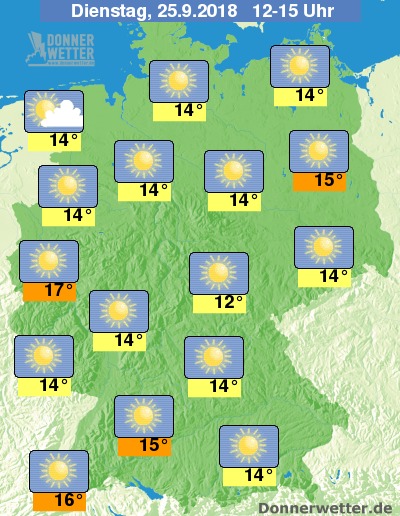 Am frühen Nachmittag verwöhnt uns die Sonne von einem blauen Himmel. Nur an der Nordseeküste ziehen einige Wolken heran. Die Temperaturen liegen meist nur bei kühlen 12 bis 15 Grad. In der Kölner Bucht wird es mit 17 Grad etwas milder.