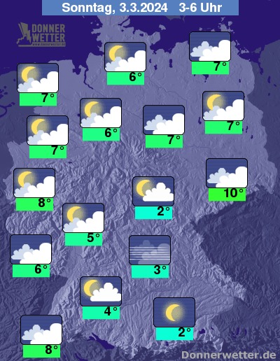 In der Nacht auf Samstag ist der Himmel über dem Westen und Südwesten stark bewölkt oder bedeckt, dabei kann gebietsweise auch etwas Regen fallen. In den übrigen Landesteilen dominiert lockere oder aufgelockerte Bewölkung, vor allem im Südosten Bayerns kann es auch aufklaren. In den Niederungen kann sich in der Nacht Nebel bilden.