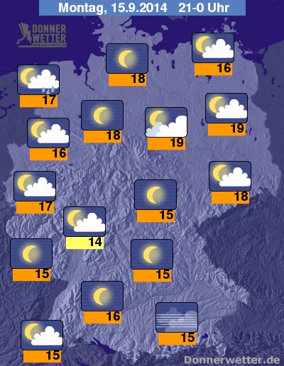Heute Abend bilden sich an der ostfriesischen Nordseeküste und entlang der Ems noch regional Schauer, sonst ist es jedoch verbreitet nur locker bewölkt, häufig auch sternenklar und trocken. Die Abendtemperatur liegt bei 19 Grad in Magdeburg und 14 Grad im Odenwald.