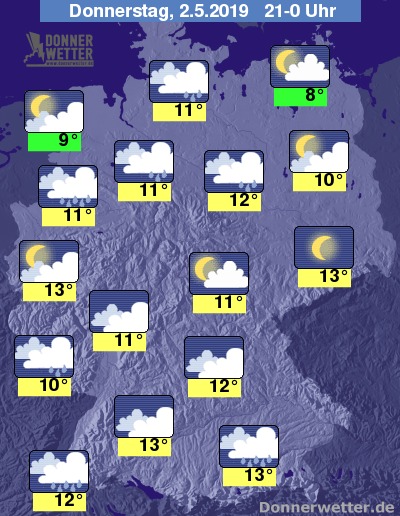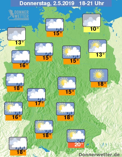 Die Temperaturen liegen am frühen Abend im Norden zwischen 10 und 15 Grad, sonst werden meist noch 15 bis 20 Grad erreicht. Dort wo Regenügsse auftraten ist es bereits kühler.