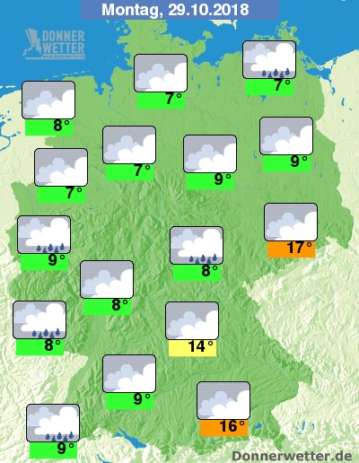 Zum Start in die neue Woche präsentiert sich das Wetter im Land praktisch einheitlich trüb und grau und die Sonne blinzelt nur selten mal durch die Wolken, jedoch bleibt es auch meist trocken. Regen fällt gebietsweise in den westlichen Landesteilen sowie hier und da über der Mitte und im Osten. Die Temperatur steigt auf 7 Grad in Hamburg und bis 17 Grad in Dresden.