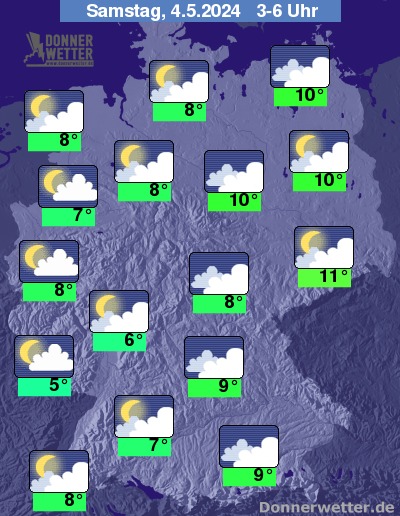 Die Temperaturen gehen in den frühen Morgenstunden zurück auf Werte um 11 Grad in der Lausitz und 5 Grad im Saarland.
