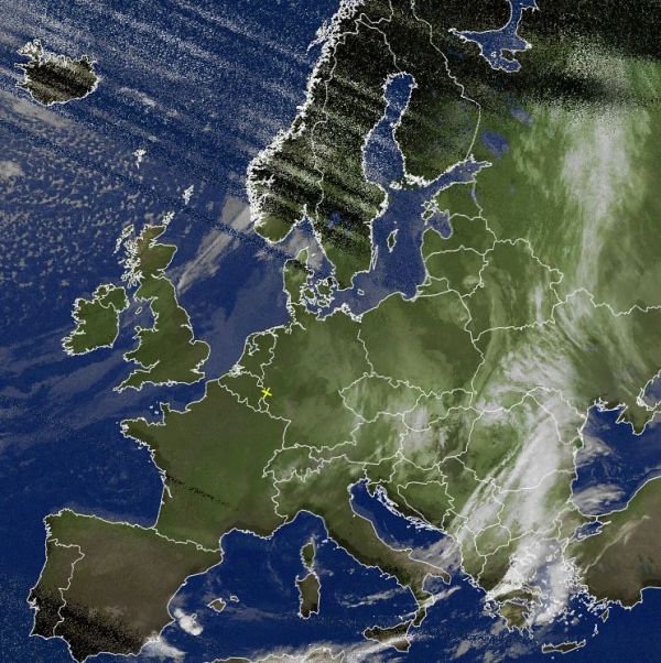 Auf dem Satellitenbild von heute Morgen sind die vielfach dichten Regenwolken von der Ägäis, weiter nach Norden bis nach Osteuropa hinein zu erkennen. Vor allem rund um die Ägäis herrschte dabei verbreitet Schauer- und Gewittergefahr, weiter nach Norden brachten die Wolken meist nur einzelne Schauer.