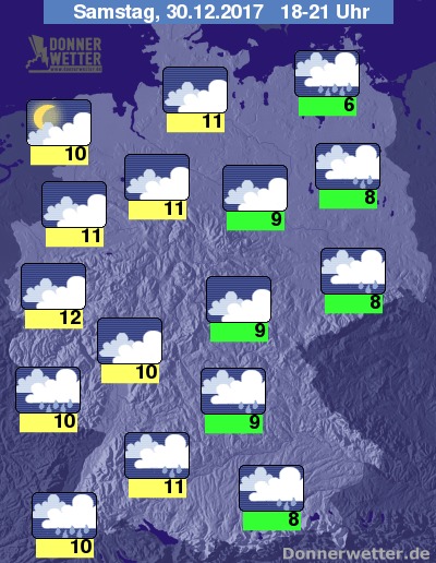 Heute Abend bleibt uns die dichte Wolkendecke weitgehend erhalten, dazu fällt besonders im Süden und Südwesten, aber auch von Sachsen bis zur Ostsee zeitweise Regen. Die Temperatur liegt bei 8 bis 12 Grad. An Nord- und Ostsee weht ein teils stürmischer Wind.