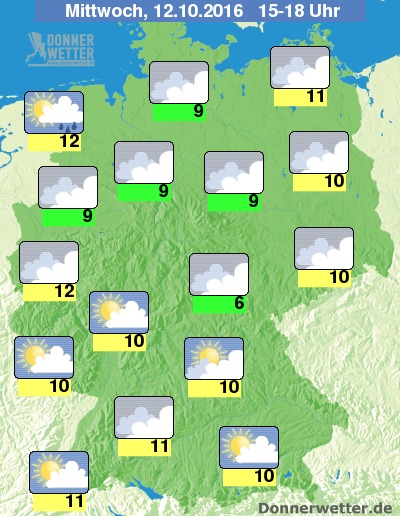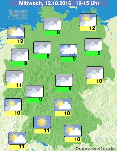 Die Temperaturen liegen um die 6 Grad C in Erfurt und um die 12 Grad C in Bonn.
