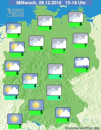 Heute Mittag und am frühen Nachmittag ist der Himmel in der Nordhälfte überwiegend bedeckt und gebietsweise ist mit Regen zu rechnen. Im Nordwesten mehr Sonne bei leichter Bewölkung. Richtung Süden etwas freundlicher mit einigen Sonnenabschnitten bei einem meist bewölktem Himmel.