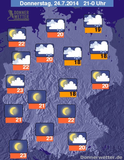 Heute Abend ziehen vor allem im Norden und Osten vielfach dichte Wolken mit zeitweiligem Regen durch, sonst ist es meist locker oder aufgelockert bewölkt und es bleibt meist trocken. Die Abendwerte liegen bei 23 Grad in der Kölner Bucht und kühleren 18 Grad an der Oder.