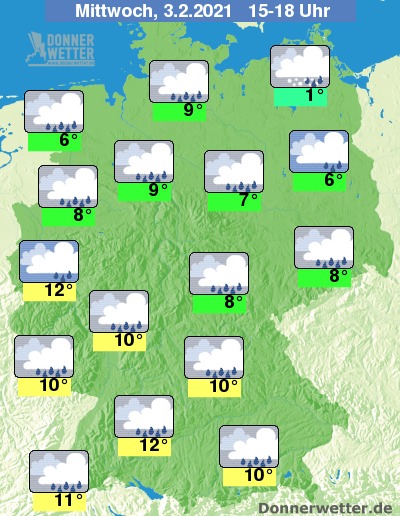 In den Nachmittagsstunden bleibt die Wolkendecke abseits einzelner Auflockerungen an Weser und Elbe geschlossen. Dabei muss im Tagesverlauf immer wieder mit teils kräftigen Niederschlägen gerechnet werden, die im Nordosten auch als Schneeregen oder Schnee fallen können. Dabei weht vor allem im Küstenumfeld ein teils stürmischer Wind, an der Ostseeküste sind auch Sturmböen möglich.