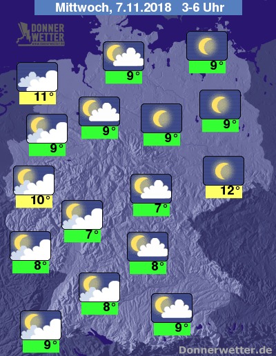 Am Wetterzustand ändert sich bis Mitternach nicht viel. Allerdings können sich stellenweise Nebelfelder bilden. Die Temperaturen gehen zurück.