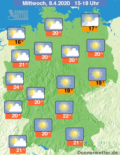 Bis zum frühen Abend werden die Haufenwolken im Westen und über den Mittelgebirgen auch mal mächtiger und können einzelne isolierte Regengüsse produzieren. Sonst ändert sich an der Wetterverteilung recht wenig. Die Temperaturen können aber gebietsweise noch etwas ansteigen.