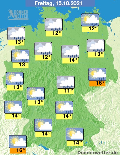 Am Freitag ist es oft stark bewölkt oder trüb, hier und da zeigen sich auch Aufheiterungen. Über dem Norden bilden sich gebietsweise Schauer, auch über der breiten Landesmitte sind vereinzelte Schauer möglich, sonst bleibt es trocken. Die Temperatur steigt auf 11 Grad in Erfurt und bis 16 Grad in Breisgau. An den Küsten weht ein starker und oft auch stürmischer Wind.