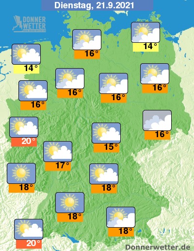 Heute Abend klingen letzte Schauer im Südwesten des Landes ab und es lockert und heitert auch hier weiter auf. Im Nordosten sind unter dichten Wolken einzelne Schauer möglich, auch im übrigen Norden und Osten ist es noch meist stark, hier und da aber auch aufgelockert bewölkt. Im übrigen Bundesgebiet ist es überwiegend heiter und dazu trocken. Die Temperatur liegt bei 14 Grad in Jena und bis 21 Grad in Köln.