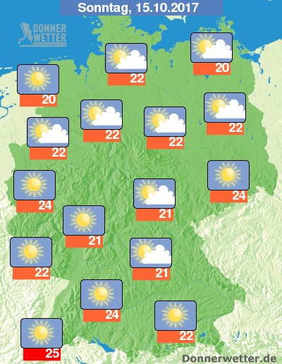 Am Sonntag können wir im ganzen Land heiteres bis sonniges Spätsommerwetter genießen. Besonders über der Südwesthälfte Deutschlands ist es dazu meist wolkenlos. Bei Temperaturen von 20 Grad an den Küsten und bis 25 Grad im Oberrheingraben bleibt es überall trocken.