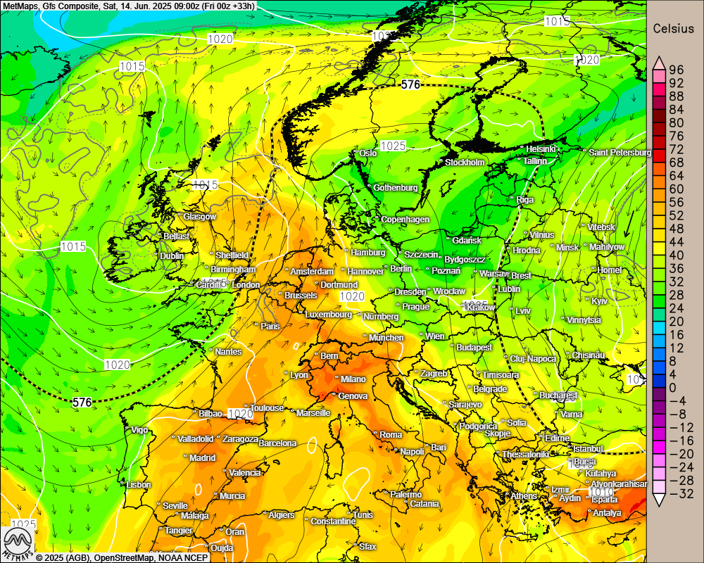Wetterkarte Samstag, 09.00 Uhr (GFS)