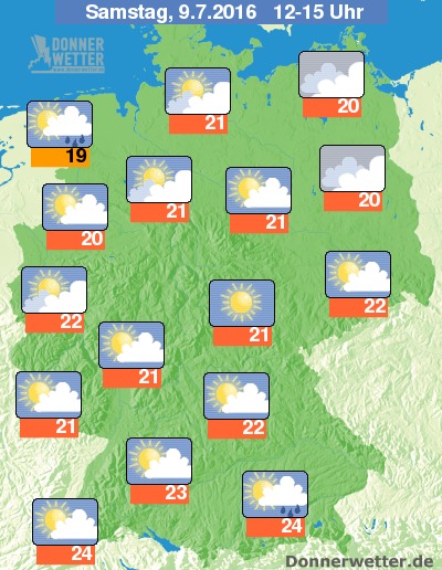 Bei Höchstwerten um 19 Grad C auf den Ostfriesischen Inseln und um 24 Grad C im Schwarzwald bleibt es meist trocken.