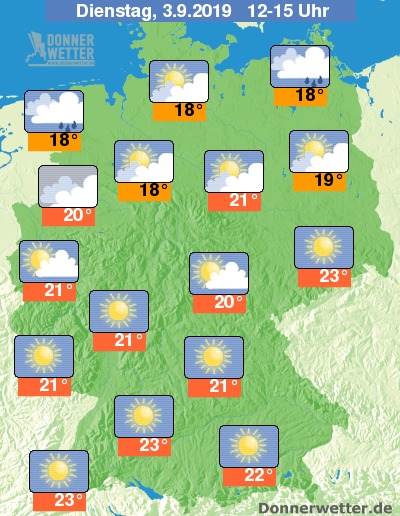 Die Temperaturen liegen im Norden zwischen 17 und 21 Grad. Sonst werden angenehme 20 bis 23 Grad erreicht.