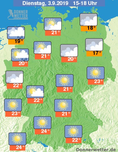 Bis zum frühen Abend sollte sich an der Wetterverteilung kaum was ändern. Die Temperaturen steigen im Laufe des Nachmittags im Südwesten noch etwas an und erreichen stellenweise spätsommerliche 25 Grad.