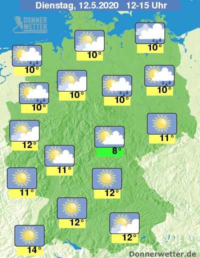 Am frühen Nachmittag gibt es im Norden eine aprilwettrige Mischung aus Sonne und dickeren Haufenwolken mit Schauern. In der kühlen Luft mischen sich zum Teil Graupelkörner unter die Regentropfen. Im übrigen Land bleibt es überwiegend freundlich mit längeren sonnigen Abschnitten. Lediglich am Alpenrand halten sich die Wolken zäher.