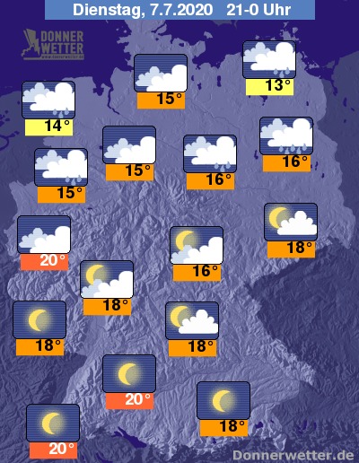Am frühen Abend liegen die Temperaturen noch zwischen 16 Grad an der unteren Ems und angenehmen 24 Grad im Breisgau, sowie in der Kölner Bucht.
