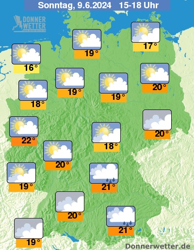 Die Temperaturen erreichen Werte um 16 Grad in Küstennähe und 22 Grad in Köln.