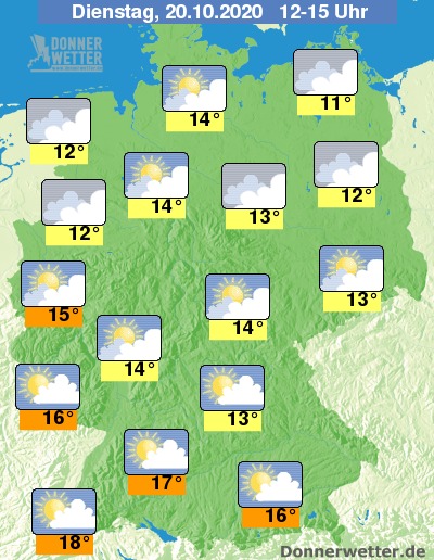Die Temperaturen bewegen sich allgemein zwischen 11 und 15 Grad, im Süden und Westen können mildere 16 bis 19 Grad erreicht werden.